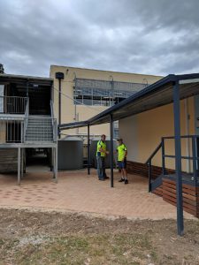 Built in December 2016, Finley High School COLA was built as a large cover over the concrete area between school buildings. Features included Galvanized steel with no welding on-site, and bird-proofing to protect children from bird droppings.